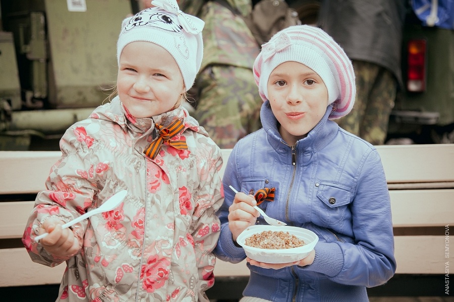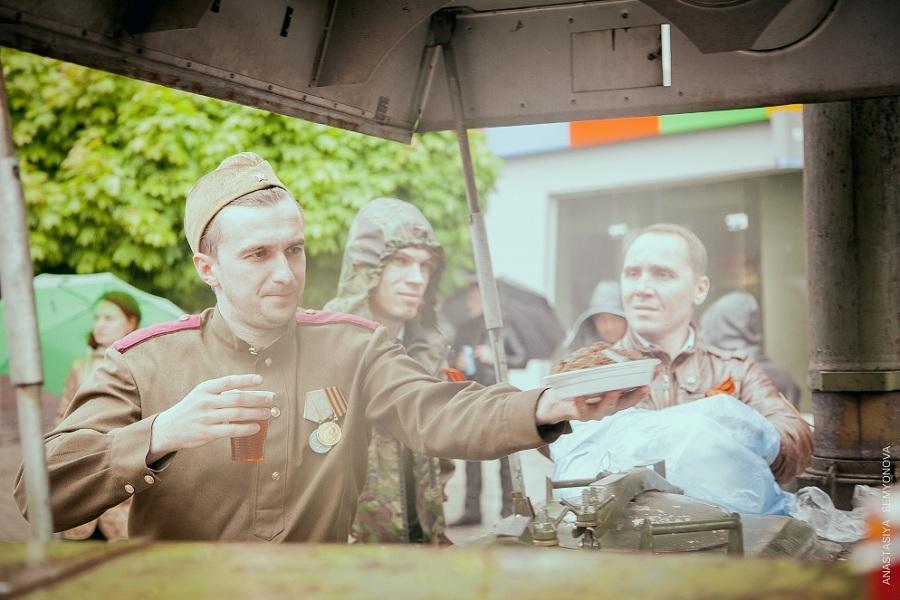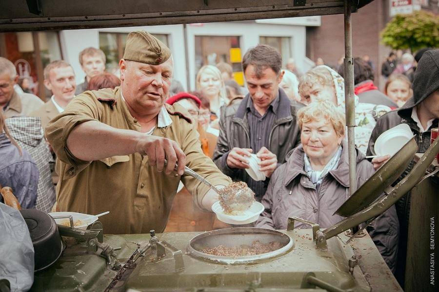 Ощущение праздника присутствовало везде, и полюбившиеся многим торговые центры Калининграда не могли не поддержать патриотический дух. Каждый желающий смог отведать солдатской каши и прочувствовать радости военной жизни. Ведь что для солдата может быть сытнее и вкуснее, чем настоящая армейская каша!
