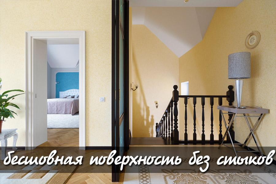 Шелковая штукатурка — это бесшовное покрытие стен, их не надо стыковать или подгонять рисунок, этот материал не отклеивается при изменении температуры или при изменении влажности и не выгорает на солнце.