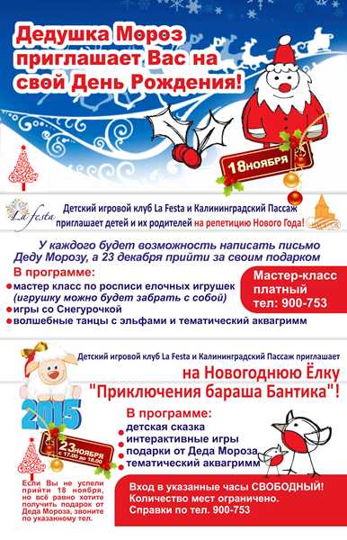 «Калининградский Пассаж» объявляет репетицию Нового года и приглашает детей и их родителей на празднование дня рождения Деда Мороза, которое состоится 18 ноября с 17:00 до 19:00!