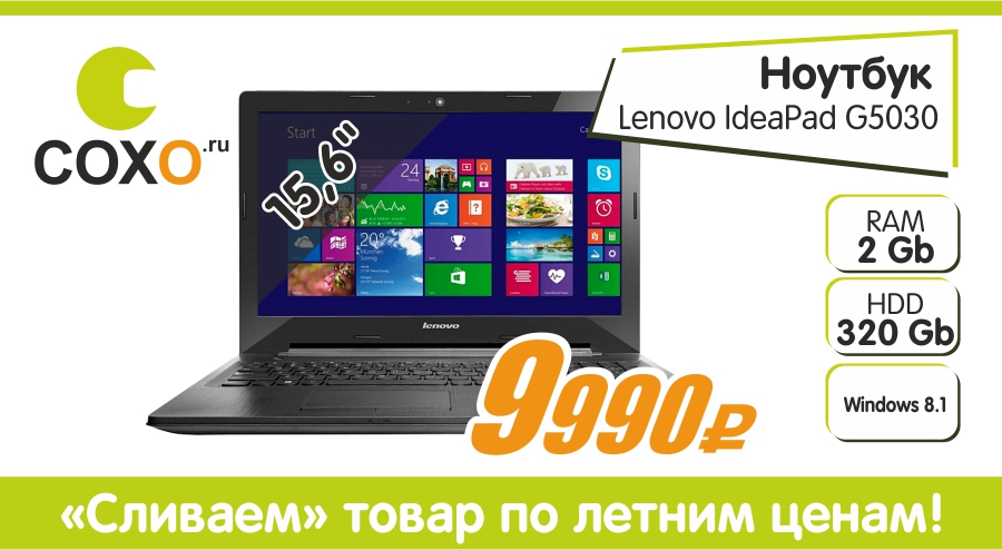 1. Ноутбук Lenovo G5030 всего за 9990 рублей.