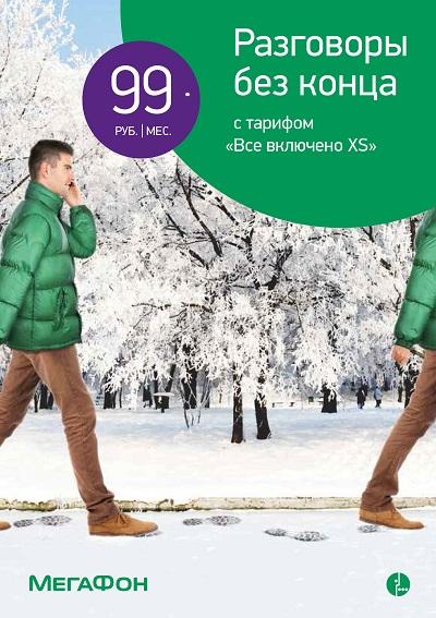 Выгодный тариф для смартфонов «МегаФон — все включено XS» становится еще доступнее. По условиям акции, действующей до 31 января 2015 года включительно, ежемесячная абонентская плата в первые два календарных месяца с момента подключения на тариф «МегаФон — все включено XS» составит всего 99 рублей.