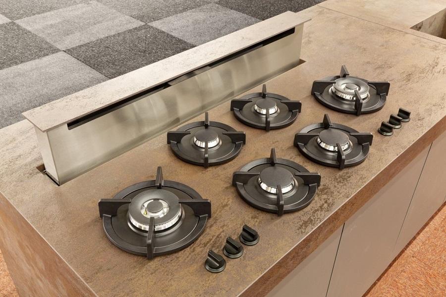 Интегрированные газовые горелки Pitt устанавливаются практически в любой тип столешниц различной толщины. Это может быть поверхность из кварца, гранита, керамики, бетона, стекла, нержавеющей стали, искусственного камня