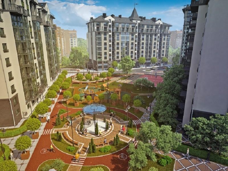 На бетонной подушке верхнего перекрытия подземной парковки будут разбиты аккуратные дорожки из специального искусственного материала, максимально имитирующего природный — больше никакой грязи!