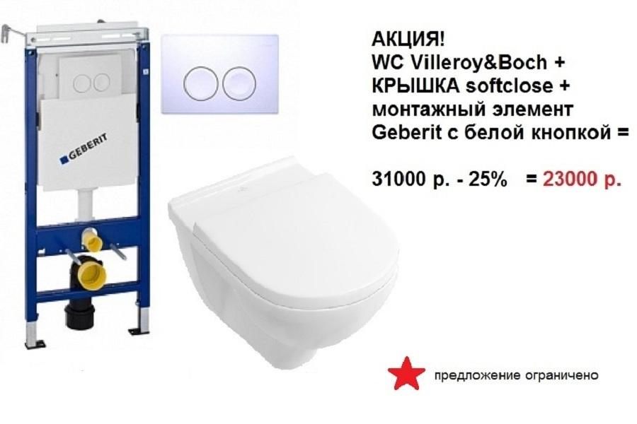 — подвесной унитаз «O'novo Villeroy&Boch» (Германия) с крышкой + инсталляция «Geberit» (Швейцария) = 23000 р.;