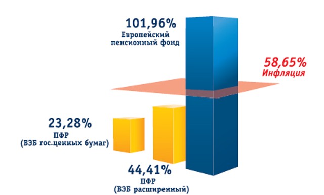 Это значит, что пенсионные накопления клиентов с 2009 года выросли больше чем в два раза и сильно обогнали инфляцию.
