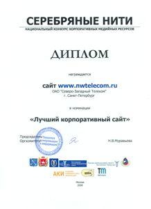 По решению Экспертного совета конкурса сайт «nwtelecom.ru» удостоен награды в номинации «Лучший корпоративный сайт».