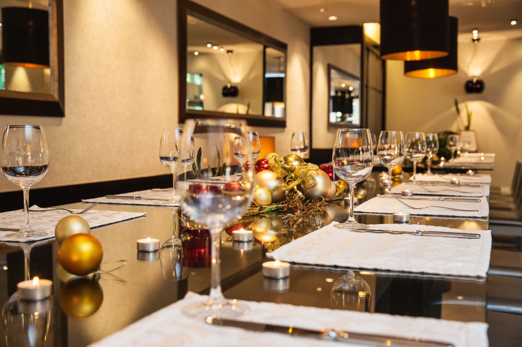 При выборе места для корпоративного вечера также необходимо внимательным образом рассмотреть предложенное заведением меню. Шеф-повар отеля Юрий Лисицын подготовил три варианта праздничного меню с большим выбором закусок, салатов, мясных и сырных ассорти. Нежный лосось со спаржей и пикантным соусом шафран, сочный говяжий стейк с запеченным картофелем и овощами, аппетитная утка с ягодным сыром, тигровые креветки с экзотическим соусом гуакамоле — это новогоднее меню создано, чтобы разбудить чувства и превратить праздник в невероятное гастрономическое приключение.
