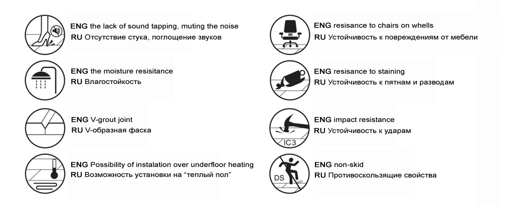 Технология производства и применение материалов высокой прочности делают «Step Fashion» лидером среди напольных покрытий по износостойкости и устойчивости к механическим повреждениям. Также продукт обладает высокими показателями по устойчивости к