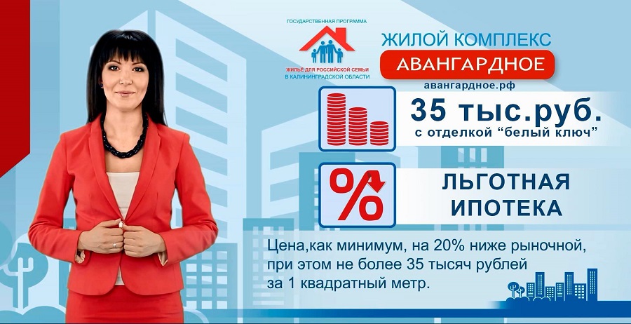 Программа «Жилье для российской семьи» стартовала в 70 регионах страны в 2014 году, в том числе и в Калининградской области. Основные цели Программы — поддержка граждан, нуждающихся в улучшении жилищных условий, повышение доступности жилья за счет снижения средней стоимости одного квадратного метра жилой площади и предоставления со стороны государства льготных условий по ипотеке. Реализация Программы стала возможна благодаря государственной поддержке как застройщиков, так и граждан. Для застройщиков — это предоставление льготного кредитования. Гражданам же дается возможность приобрести квартиры по 35 000 руб. за 1 кв.м с отделкой «белый ключ» при помощи льготной ипотеки от АИЖК с процентной ставкой по кредиту от 9.9%.