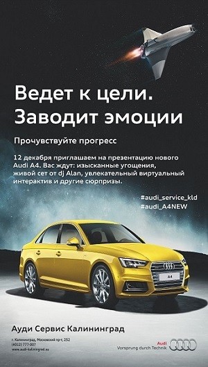 Итоги подведем 12 декабря в 13.00 на презентации Нового Audi A4 в Ауди Сервис Калининград по адресу Московский пр-т, 252.