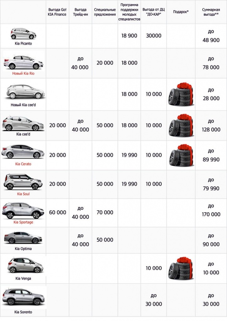 Специальные предложения на автомобили KIA (до 31 декабря 2015 г.):