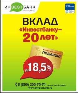 В рэнкинге "Лучшие ставки по депозитам в рублях на 12 месяцев" (минимальная сумма вклада до 100 000 рублей) вклад "Инвестбанку - 20 лет" занимает пятнадцатое место, вклад "Лучше зарплаты" - семнадцатое место.
