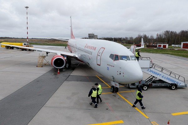 В четверг в аэропорту «Храброво» впервые приземлился самолет, названный в честь Калининграда. Boeing 737–800 привез пассажиров из