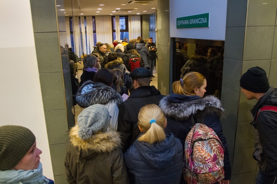 На самом деле это не так быстро, как хотелось бы. Если на российской стороне действительно контроль и досмотр проходит четко по графику (а то и быстрее), то на польской возникают задержки. Например, утром в Бранёво всех пассажиров отправили в абсолютно не приспособленный для всей этой процедуры зал, где работало всего два окна на без малого полторы сотни человек. На улице таможенники развернули мобильный сканер, куда выборочно отправляли пассажиров, к остальным просто заглядывали в рюкзаки и задавали дежурные вопросы про сигареты и алкоголь. После этого пассажиров отправляли обратно на перрон, но уже в поезд польского перевозчика. Всего процедура заняла около полутора часов вместо плановых 40 минут.