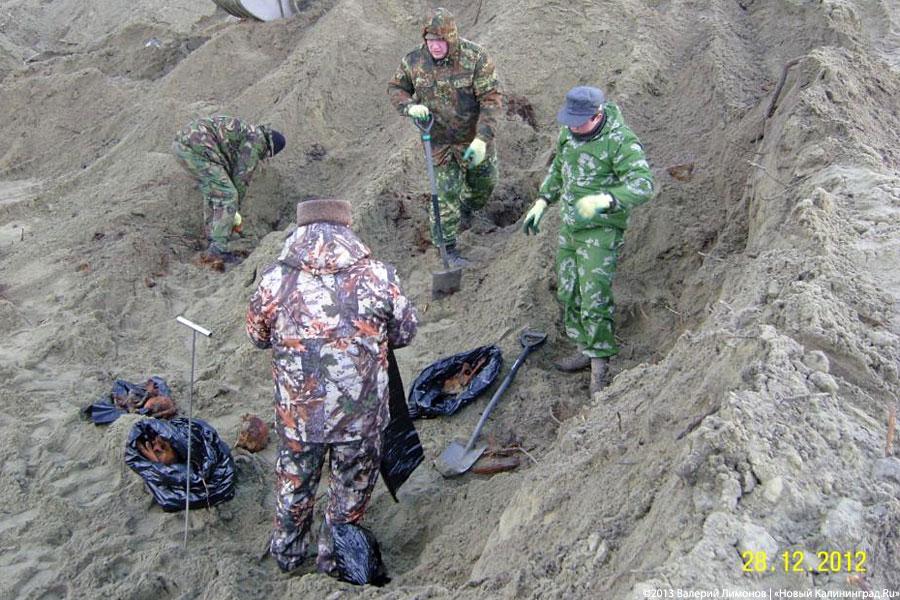 «На стройплощадке работают экскаваторы, которые ковшами выгребают гробы и кости. Останки жителей бывшего Пиллау собирают волонтеры из организации „Аванпорт“, которые убирают их буквально из-под строительной техники и собирают в полиэтиленовые пакеты. Они работают бесплатно по собственной инициативе», — сообщил Валерий Лимонов.