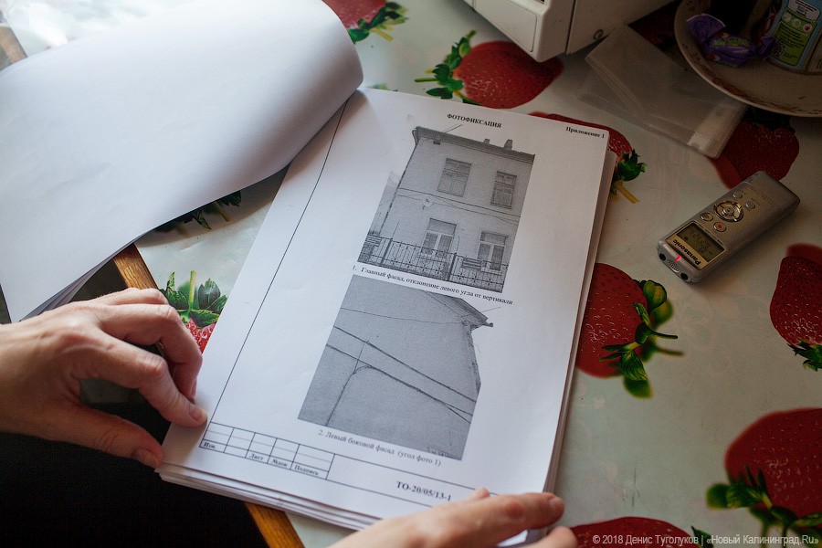 То, что у дома есть крен, заметно как снаружи, так и внутри — заваленный относительно горизонта угол дома и наклонный пол в помещениях видны невооруженным глазом. В 2014 году женщина получила у МУП «Жилсервис» акт технического обследования собственной квартиры, в котором указано, что «в связи с усадкой здания прогиб межэтажных перекрытий и оконных рам составляет 10 градусов» и «по стене проходят сквозные и поперечные трещины», которые спускаются до квартиры этажом ниже и идут «далее по фундаменту здания». В акте отмечалось, что физический износ конструкций всего здания еще в 1987 году составлял 48%.