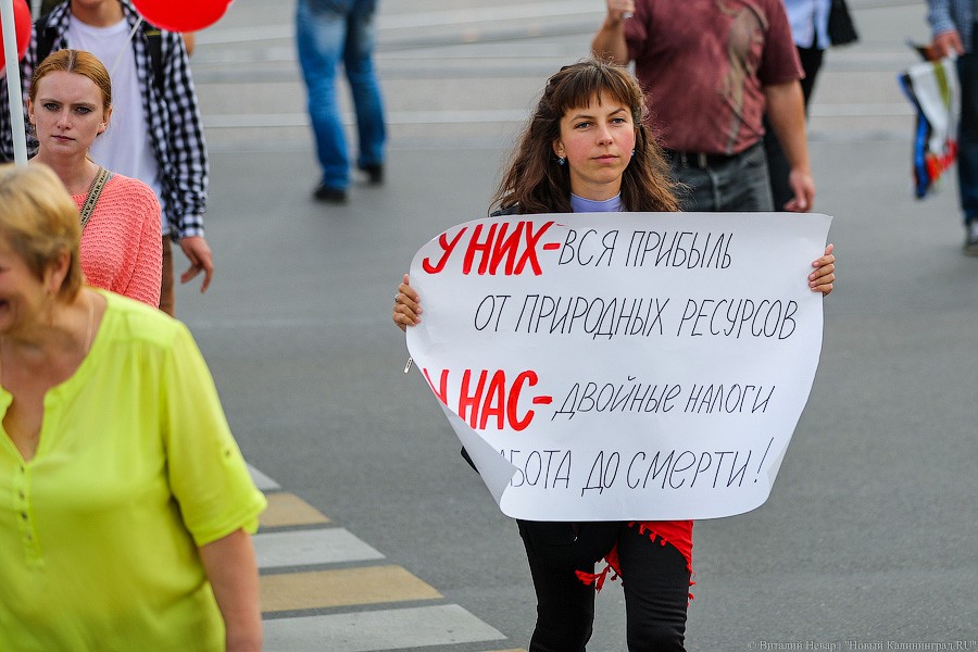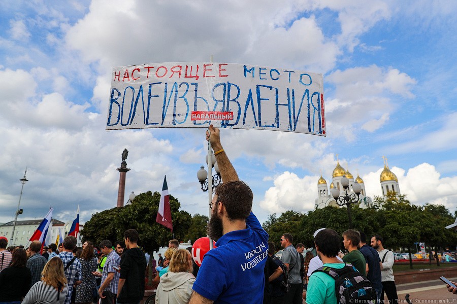 Так как конкретного места сбора на площади указано не было, люди начали кучковаться в разных местах. Активисты из местного штаба Навального** во главе со своим лидером Игорем Петровым собрались под плазменными экранами возле Ленинского проспекта. Еще несколько десятков горожан скопилось ближе к Дому Советов. Там же представители общественного движения «Суть времени» вели сбор подписей за отказ от пенсионной реформы. По словам общественников, по всей России их организации уже удалось собрать сотни тысяч подписей, и немалая часть из них — автографы калининградцев.
