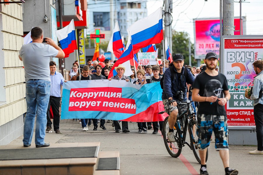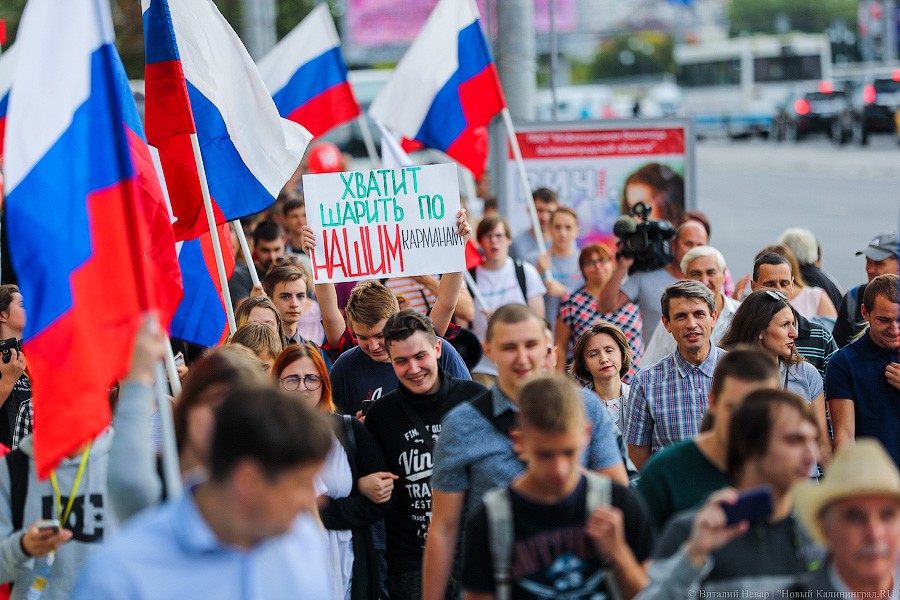 В воскресенье, 9 сентября, в единый день голосования, по всей России прошли несанкционированные митинги против пенсионной реформы, организованные штабами Алексея Навального. СМИ сообщают о *.io/feature/2018/09/09/po-vsey-rossii-proshli-mitingi-protiv-pensionnoy-reformy-zaderzhany-sotni-lyudey-posmotrite-kak-eto-bylo" style="background-color: #ffffff;" rel="nofollow noopener" target="_blank">сотнях задержанных участников. В Калининграде, как и в других городах, власти мероприятие согласовать отказались. За тем, как прошла несанкционированная демонстрация против увеличения пенсионного возраста, наблюдал «Новый Калининград».