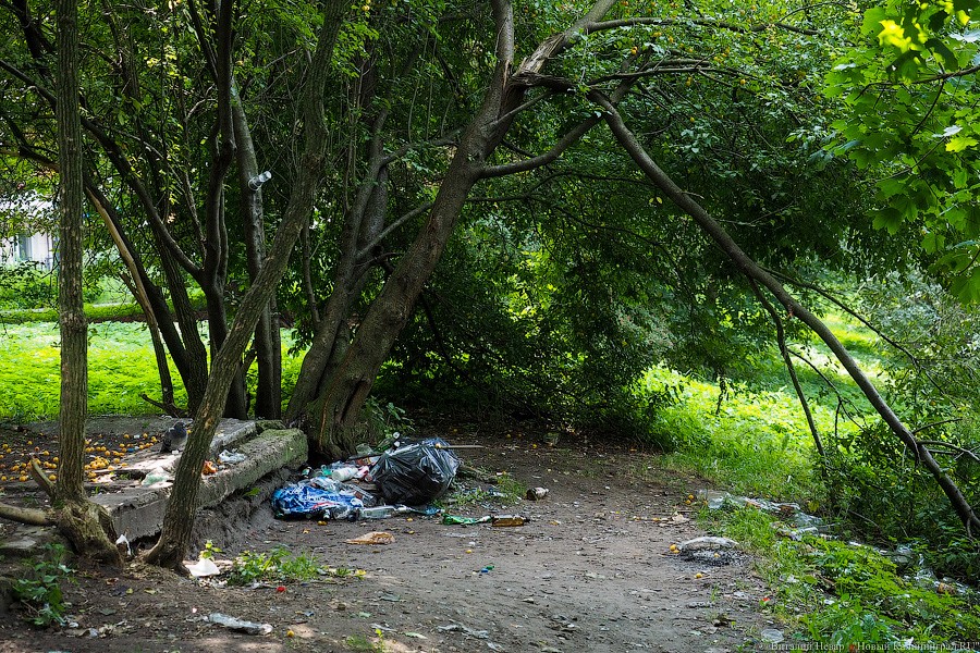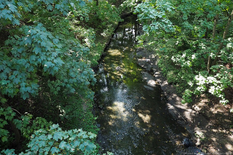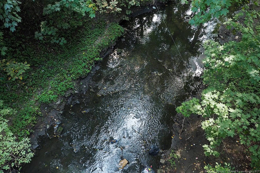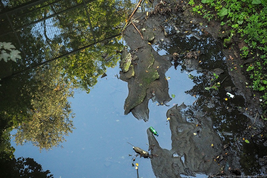 Очевидно, в том числе благодаря «дорогим калининградцам». Мы стоим на мостике у входа в зоопарк, мимо проходит молодая семья с ребенком, который тянет папу и маму «посмотреть на красивую речку». Родители смотрят и ужасаются: «Глянь, прямо пакеты с мусором выбросили». Пакеты прочно угнездились в грязи, которая притворяется берегом, рядом — кирпичи, покрышки, бумажные стаканчики из «Макдоналдса». В администрации, впрочем, утверждают, что берега периодически очищаются: «Работы по уборке от мусора береговых объектов на территории городского округа „Город Калининград“ осуществляются специалистами МБУ „Гидротехник“ 1 раз в месяц и по мере необходимости».