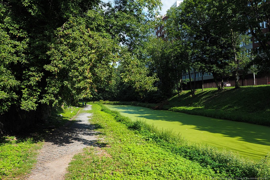 Но всего этого явно недостаточно, и когда бы вы ни пришли в это живописное место у Закхаймских ворот, вас встретит локальная свалка и остов еще немецкой вышки (говорят, до войны здесь соревновались пловцы). Жителям не так давно построенных рядом высоток, вызвавших в свое время вселенский скандал, остается только вздыхать о планах,