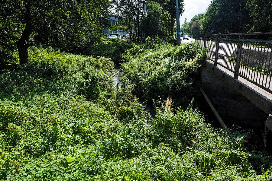 Эта небольшая с виду речушка тянется через половину города, начинаясь чуть ли не в районе поселка Нивенское в Багратионовском районе, извиваясь, петляя и впадая в Преголю неподалеку от ул. Яблочной. Ее проблемы начинаются именно в районе ул. Дзержинского, где в Лесную впадает канал