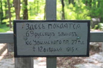 «Дело в том, что в этом месте нет никакого захоронения, и никогда не было, — написал Николай Троневский в своем ЖЖ. — На самом деле, на этом месте захоронены простые немецкие селяне». Само же кладбище, где покоятся вот уже почти 100 лет русские воины, находится в 1,5 км от того места, которые облагораживали энтузиасты. Кладбище едва угадывается на местности и находится в не самом лучшем состоянии — кресты повалены, вокруг трава и заросли.