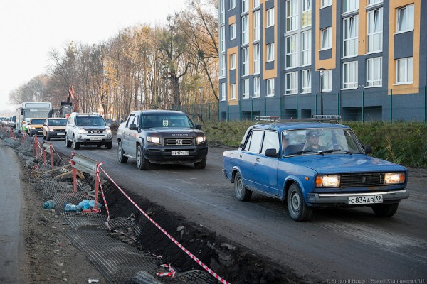 Тротуар есть не везде, местами пешеходы вынуждены идти по краю проезжей части. Таких немало — в сторону Васильково спешат опаздывающие на работу калининградцы.