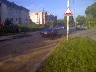 Корреспонденты «Нового Калининграда.Ru», выехав на место ремонта, обнаружили знаки объезда на ул. Гайдара, однако на ул. Озёрной знаки установлены не были.