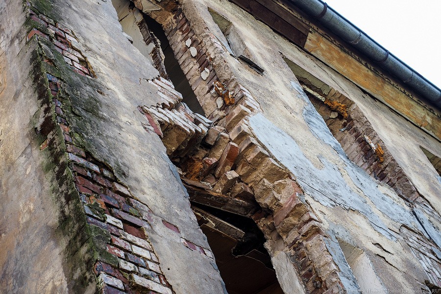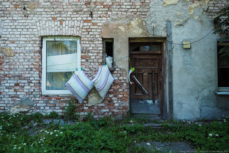 В Калининграде на ул. Восточной расположен многоквартирный дом немецкой постройки. В начале 2015 года там произошел взрыв бытового газа. И без того признанное аварийным здание теперь больше напоминает послевоенные руины. В доме, где нет ни газа, ни отопления, продолжают жить несколько семей. Жильцы вынуждены отгораживаться фанерой от плесени на стенах, периодически тушить пожары и делить туалеты с бездомными. Расселить дом чиновники изначально планировали до конца 2019 года, но недавно горожане выяснили, что этот срок сдвинули на 2023 год.