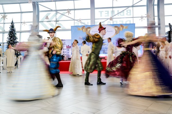 В «Храброво» в понедельник дали костюмированный бал, посвященный 310-летию со дня рождения императрицы Елизаветы Петровны. В её честь в рамках всероссийской кампании «доназвали» калининградский аэропорт. Скучающих в ожидании рейсов (в том числе и задержанных, область в этот день накрыл плотный туман) пассажиров вокально-танцевальными композициями развлекали сама Елизавета Петровна, Михаил Ломоносов и свита в масках и «рогатых» шапочках. Платье, в котором выступала «императрица», — реплика настоящего наряда Елизаветы Петровны. В зале вылета открылась посвященная императрице экспозиция, в подготовке которой участвовали музей «Петергоф» и Музей Мирового океана. Кроме того, в аэропорту появился портрет императрицы, созданный из 45 километров ниток.