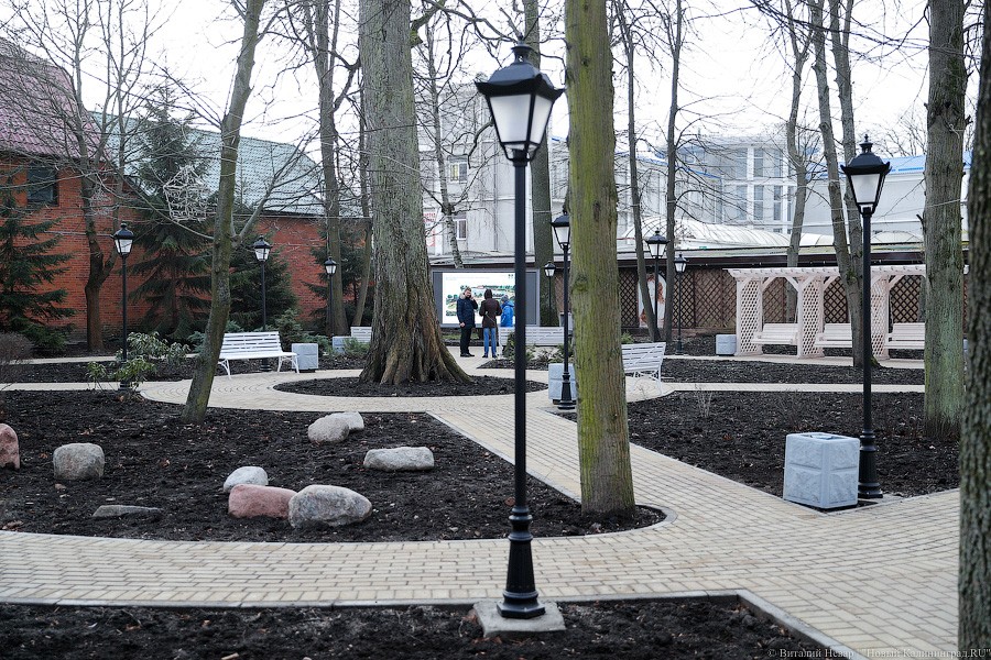 Чиновники перемещаются в сквер Королевы Луизы, который в прошлом году реконструировали в рамках программы «Комфортной городской среды» за 3 миллиона рублей. Здесь тоже появились дорожки из плитки, освещение и скамейки, установлены деревянные лавки-качели. Стоимость благоустройства составила 3,1 миллиона рублей. «Мое королевство в мире ином», гласит табличка на входе в сквер, в котором король Фридрих Вильгельм IV когда-то посадил вяз в честь своей матери. Мимо философской таблички губернаторский кортеж просвистел на первой космической.