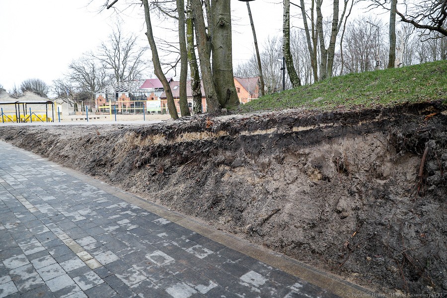 В парке обнаруживается только одна проблемная точка — место, где велодорожка «от косы до косы» надвое разрезает дюну. На свежее покрытие уже осыпается песок. «Холм, через который положили велодорожку, нужно укрепить эти склоны, потому что иначе они будут отсыпаться и, возможно, будут повреждены корни, поэтому их надо защитить. Этого нет в проекте, но подрядчик сделает сейчас эти работы, разработает соответствующее решение», — поясняет позднее прессе Алиханов.