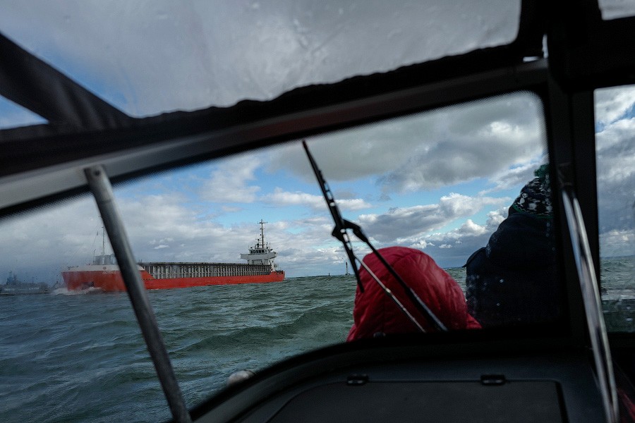В конце февраля все превратности местной туристической фортуны можно в прямом смысле хлебнуть еще по дороге к Балтийской косе. Паром в очередной раз отменили, поэтому — лодочка и брызги в лицо. Но даже это отпугивает не всех туристов. Молодой человек, прилетевший из Москвы всего на три дня, стойко переносит лихой трансфер и вместе с нами идет «смотреть ангары». «Мне сказали, нужно их увидеть обязательно», — улыбается турист.