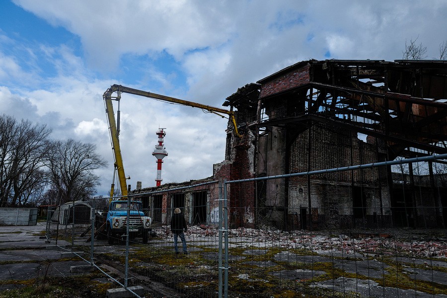 «Жалко же, еще только позавчера мы приезжали, и он целый стоял, прямо аж...», — отрывисто произносит Любовь. Она местная, выросла на Балтийской косе и тоже пришла посмотреть на демонтаж. Ангары для нее — привычная часть пейзажа: «Я с детства их помню, для меня они были всегда. В шикарном состоянии это все помню, в идеальном. Пятиметровые жалюзи-двери, их закрывали, там было тепленько, чистенько. Здесь база была, ремонтировали машины, которые обслуживали взлетную полосу».