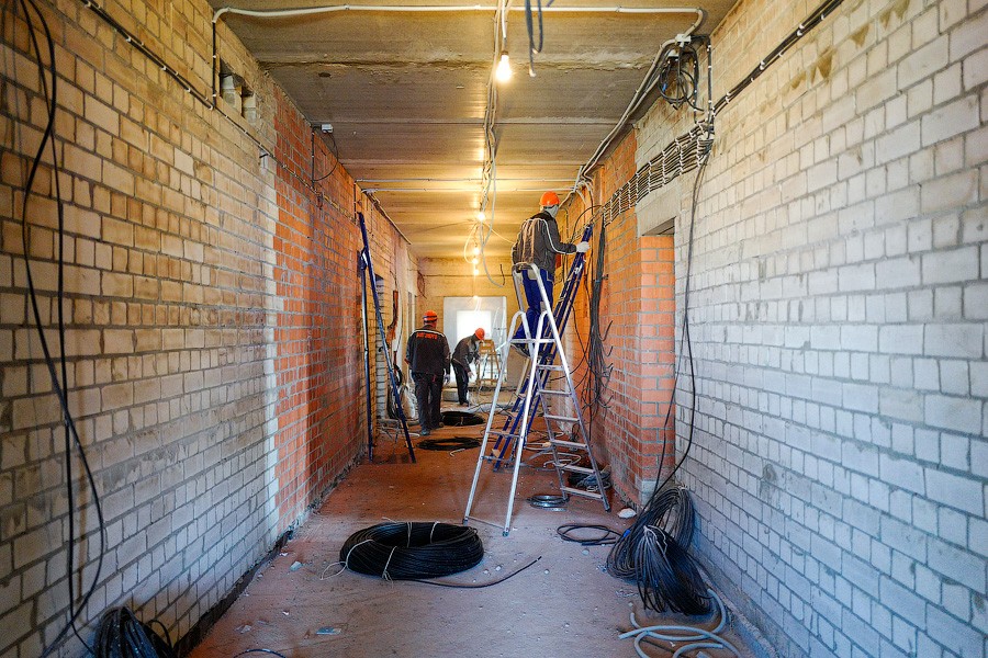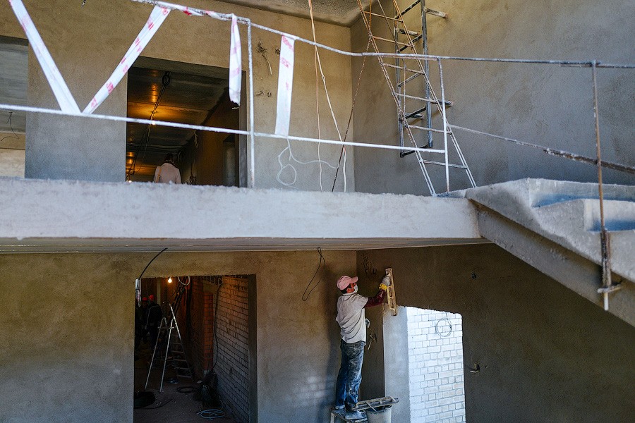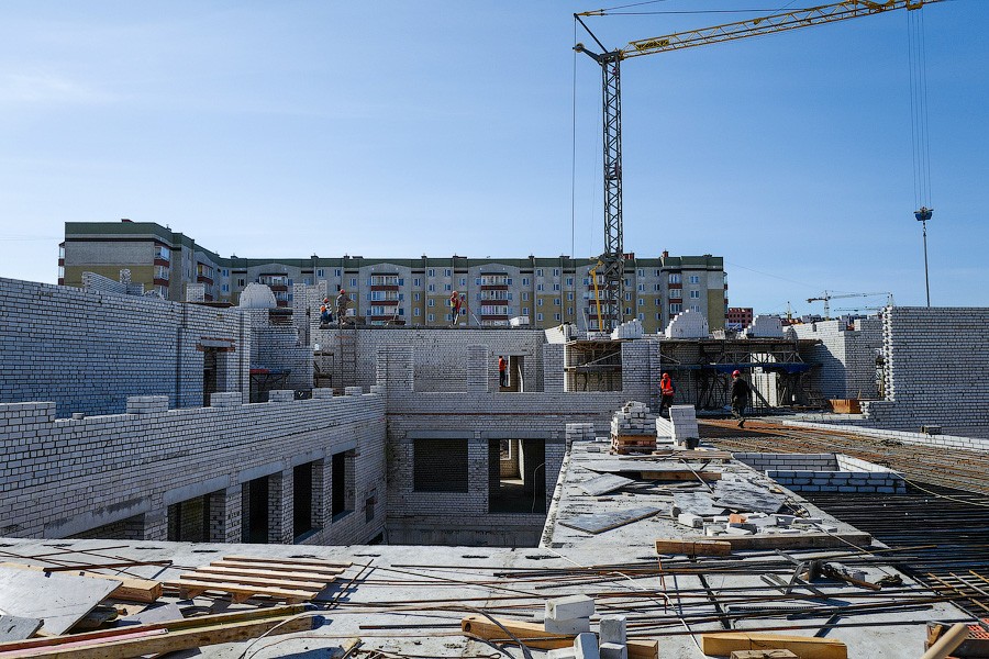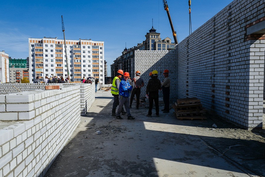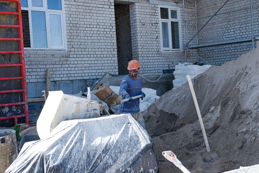 За неделю строительства новый подрядчик ухитрился достроить почти весь периметр здания до второго этажа. На верхнем ярусе чиновников встречали с полсотни рабочих. Все как один без масок. «Я их и не заставляю, даже не приветствую. Маски только заразу накапливают. Они больным нужны, чтобы те здоровых не заражали. А больных мы на работу не пускаем. А антисептики — это все есть», — пояснил журналистам Алиев. Почти все работники стройки — гастарбайтеры из соседних с Россией республик. Живут, по словам Алиева, не в общежитии, а самоизолируются в съемных квартирах неподалеку от стройки.