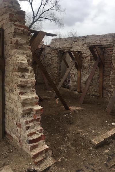 О том, что часть здания сохранить не удастся, стало известно в начале марта этого года. Тогда домик лишился одной из стен — она «поехала» в процессе реконструкции. Начальник управления культуры Гвардейского ГО Лев Суслов тогда сообщил «Новому Калининграду», что здание точно лишится оригинальной кровли и торцевой стены. В тот момент здание выглядело так: