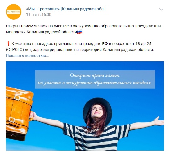 Создатель группы, организатор путешествий Александр Москалёв, пояснил корреспонденту «Нового Калининграда», что объявление было размещено за деньги, от дальнейших комментариев он отказался. В Центре молодёжи при этом заверили, что не привлекали представителей туротрасли к набору участников для проекта «Мы — россияне».