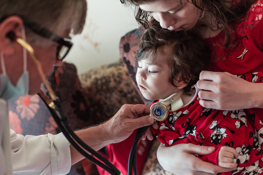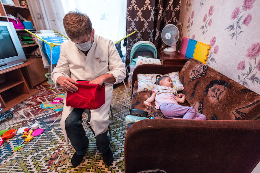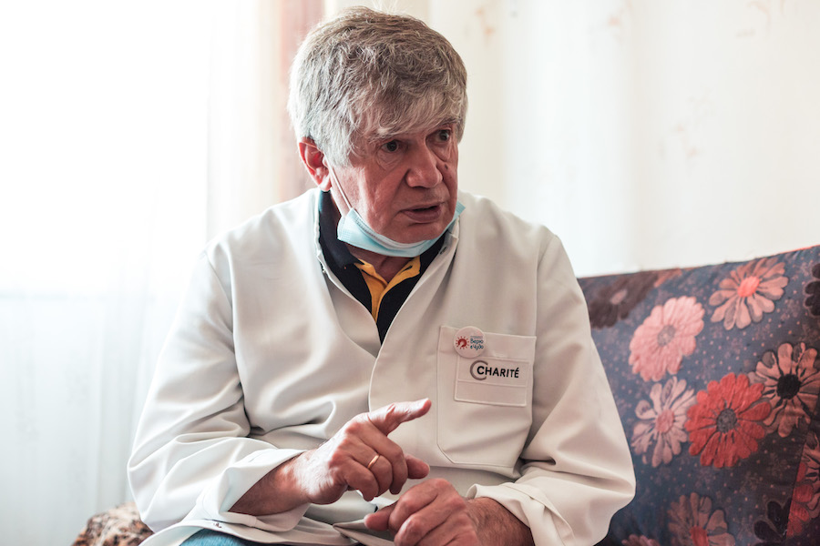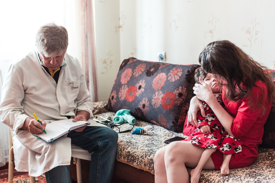 За письменным столом в общей комнате сидит невысокий седой мужчина в белом халате с надписью Charité на лацкане. «Я там практику проходил. Отличная клиника, космического уровня. А Charité для меня — это от слова «шарить», — объясняет мужчина смелую в российских реалиях надпись на своей груди и лукаво улыбается. Это Фатто Абдусалямов — врач с 40-летним стажем, кандидат медицинских наук, преподаватель БФУ им. И. Канта и педиатр благотворительного надомного хосписа. Он сегодня поедет навещать своих маленьких пациентов и согласился взять с собой журналистов.