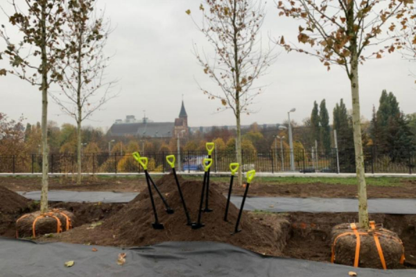 В сквере у Дома Советов посадили аллею из 21 платана. Высадка в грунт трех последних деревьев была обставлена торжественно: пригласили прессу, включили музыку, с речью выступили губернатор Антон Алиханов и врио сити-менеджера Калининграда Елена Дятлова. После появления в интернете фотографий с мероприятия, некоторые калининградцы удивились, почему деревья сажают с корнями, завернутыми в сетку и затянутыми ремнями с металлическими карабинами. Кто, как и зачем высаживал платаны, разбирался «Новый Калининград».