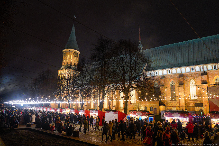 18 декабря на острове Канта в Калининграде открылась новогодняя ярмарка, которая, как ожидается, будет работать до 10 января. На территории у Кафедрального собора разместили несколько десятков павильонов с уличной едой и сувенирами. По вечерам там собираются сотни человек, желающие получить праздничные впечатления, несмотря на пандемию.