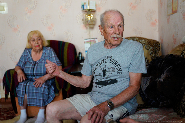 «Даже Алиханов сказал: вам денег дали достаточно на всё, что хотите. И вещи перевозить будете, и жить будете хорошо. Просто ещё миллиончика два заплатите, чтобы сделать ремонт в квартире. Я хотел записаться к нему на приём. Они спросили, сколько мне лет. Я говорю: „Тридцать восьмого года“. — „Ой, нет-нет, вы в зоне риска“», — вступает в беседу Василий Михайлович. «А где ж мы возьмём два миллиона? Кто мне их даст? Ипотеку нам вообще не дадут», — говорит Ирина Афанасьевна.