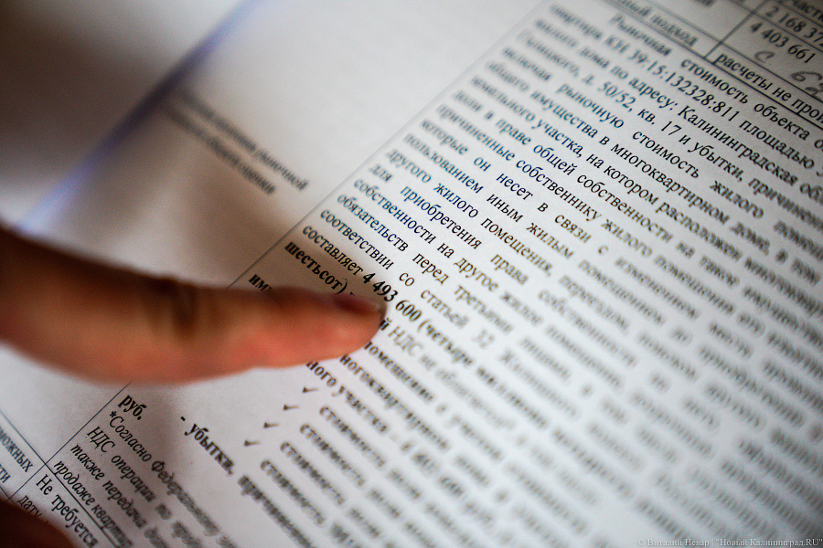 Оценку квартир в немецком здании, расположенном на пересечении улиц Буткова и Баграмяна, провели в конце марта. Проекты соглашений об изъятии с суммами выплат жильцам раздали спустя порядка двух месяцев. По словам собственников, их квартиры (большинство помещений в доме — двухкомнатные со средней площадью 53 квадратных метра) оценили в 4,3-4,7 миллиона рублей. Жильцы утверждают, что этих сумм недостаточно для покупки равноценных квартир в том же районе. Власти же в ответ говорят, что не могут выйти за рамки независимой оценки, и предлагают всем несогласным обращаться в суд. Однако у пенсионеров денег на судебные тяжбы нет.