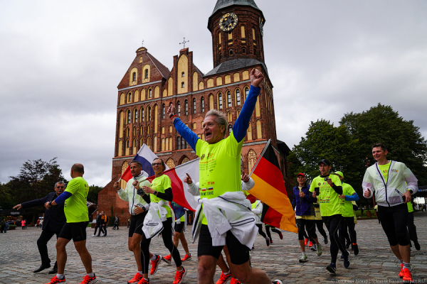 Сегодня утром иностранные легкоатлеты пересекли границу с Калининградской областью, после чего к ним присоединились бегуны из Москвы и Санкт-Петербурга. К пяти вечера спортсмены добрались до Калининграда и финишировали на острове Канта, где их ждала многочисленная группа поддержки. Среди них был и наш фотокорреспондент Виталий Невар.