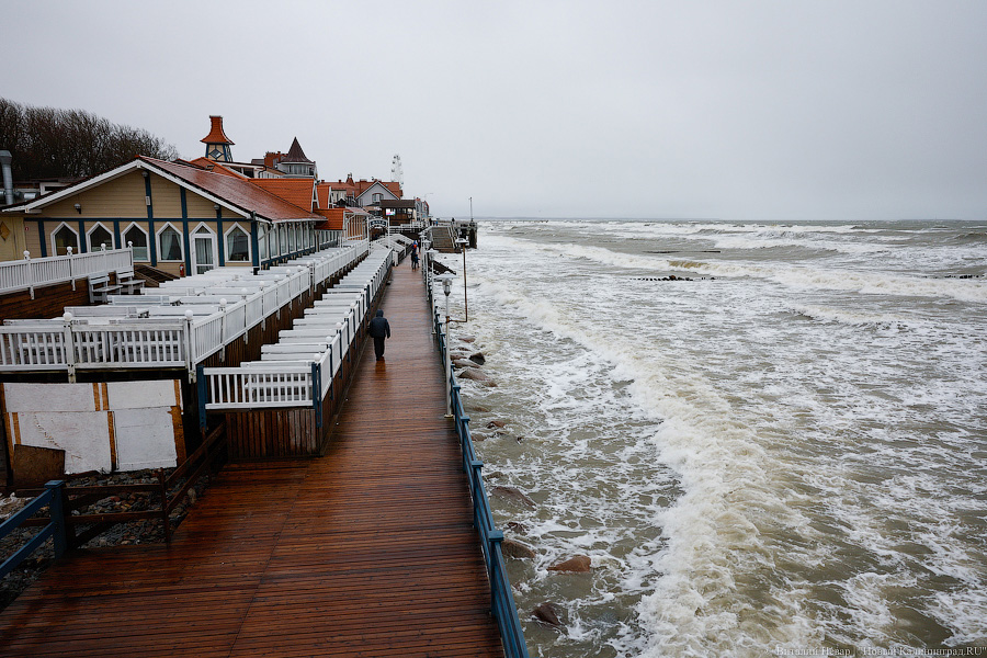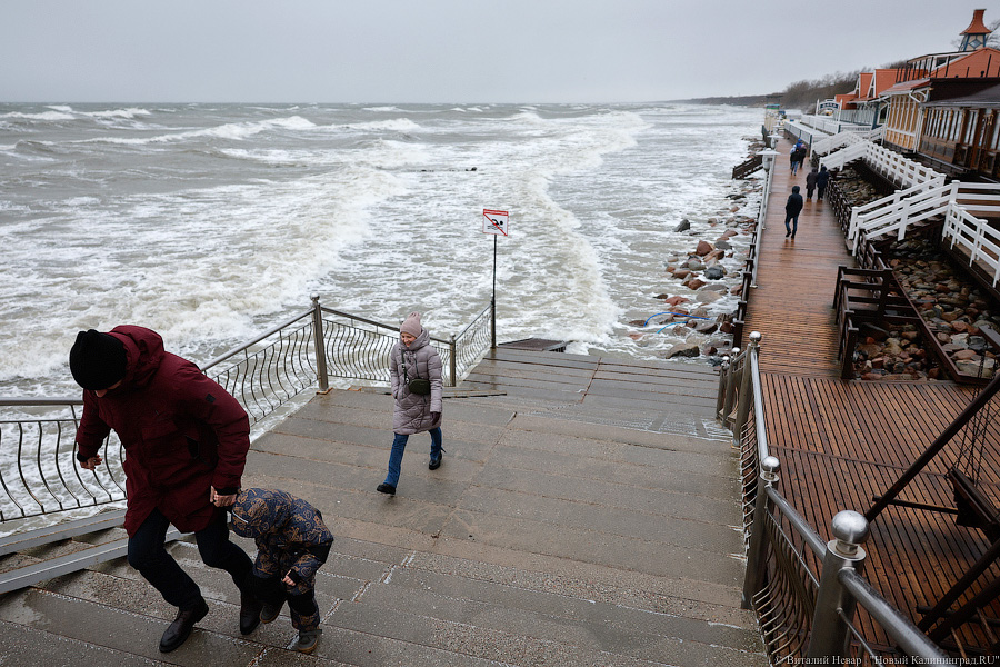 Пока коммунальщики и энергетики расхлебывали последствия шторма, который принес на Балтийское побережье циклон «Надя», другие калининградцы наблюдали за непогодой на променадах приморских городов. За тем, как жители области и туристы добровольно мокли под дождем и брызгами волн, наблюдал фотокорреспондент «Нового Калининграда» Виталий Невар.