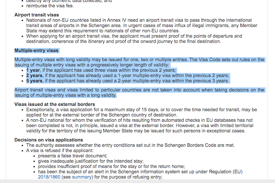 Вовсе нет. Сочинское соглашение в этом вопросе опять же касалось в основном тех же школьников, студентов, родственников людей, живущих в ЕС, журналистов и так далее. Этим «льготным» категориям полагалась сразу годовая виза при условии наличия хотя бы одной однократной в течение года. Но европейский визовый кодекс предусматривает многократные визы для всех остальных категорий граждан, так что для обычных россиян тут вообще ничего не меняется. Основания для выдачи многократной визы в документе четко прописаны: