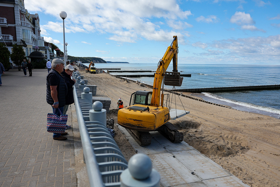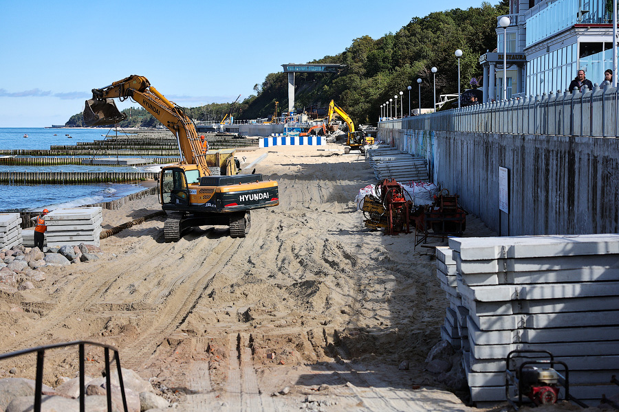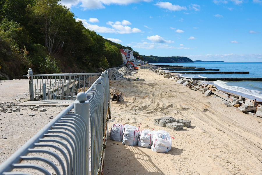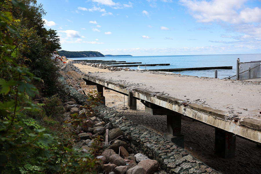 В Светлогорске продолжается реконструкция старого променада (от нижней площадки канатной дороги до центральной лестницы к морю). В настоящее время его почти полностью демонтировали. Вместо него, согласно проекту, появится набережная, схожая с новой. Работы, которые оценили в 1,5 млрд руб., должны закончить в 2024 году. За их ходом понаблюдал корреспондент «Нового Калининграда».