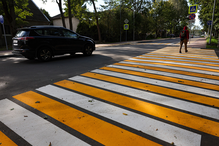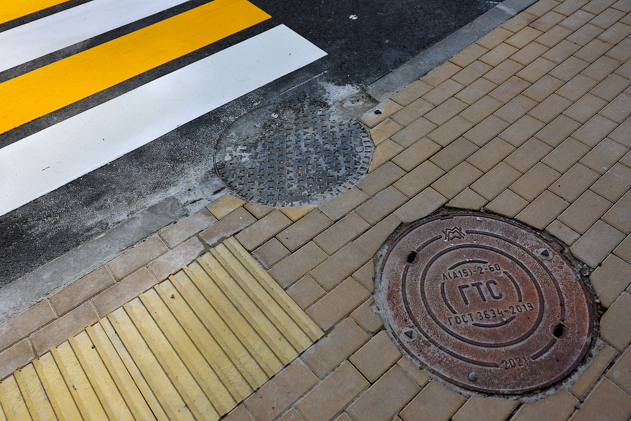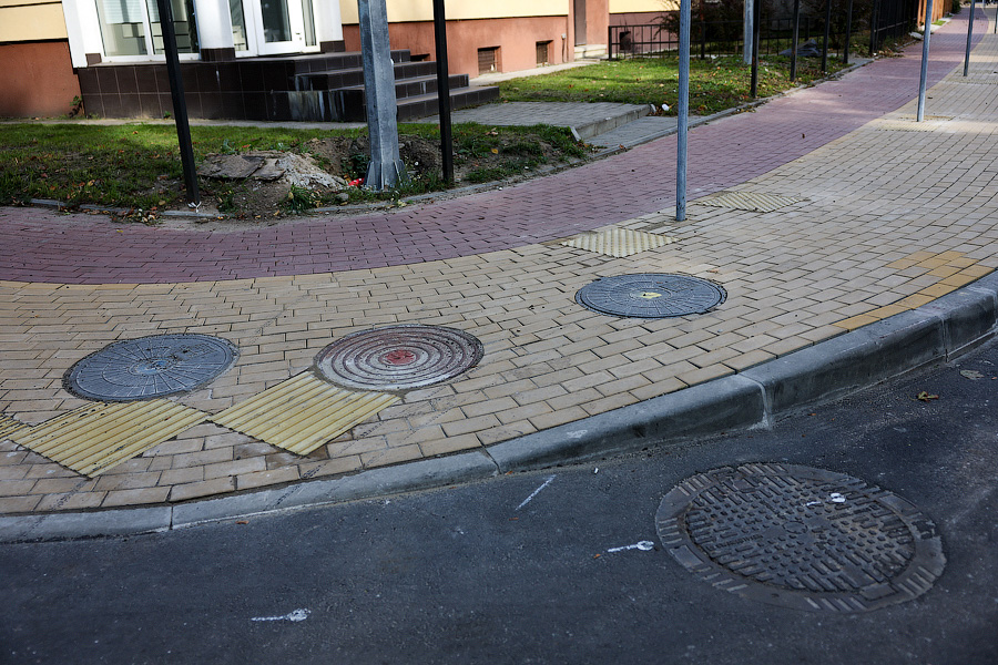 Что касается укладки тактильных плит, то логику их расположения иногда понять сложно. Однако есть огромный плюс — полимерный материал, из которого они изготовлены, скорее всего, не покроется трещинами через месяц-два с момента открытия улицы. Ранее в Калининграде использовались бетонные изделия, жизнеспособность которых не превышала одного сезона, что приводило в ужас бывшего главу транспортного комитета мэрии Дмитрия Галкаева.