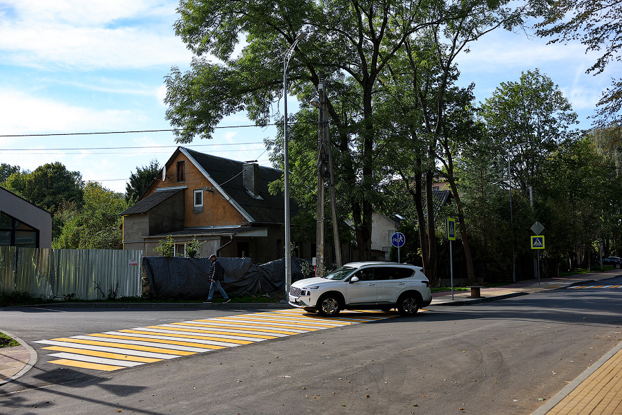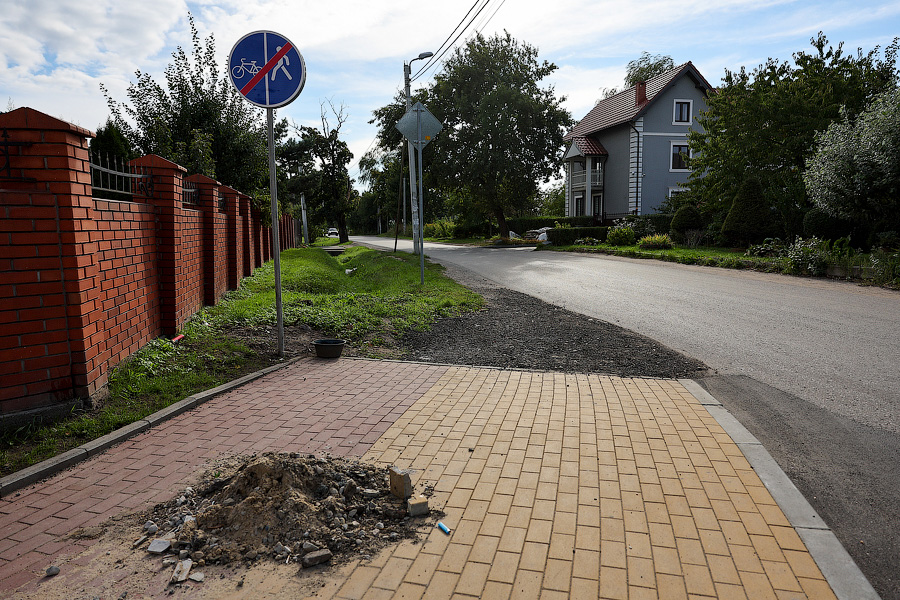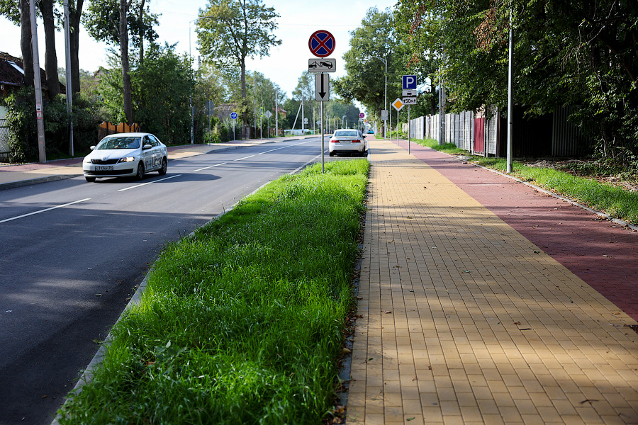 В целом улица Катина разительно изменилась. Пару лет назад она напоминала проезд в богом забытом СНТ — едва ли могли разъехаться два автомобиля, а пешеходы довольствовались разбитой тропой вместо тротуара. Сегодня по обеим сторонам дороги появились полноценные пешеходные и велосипедные дорожки, правда, ради них жителям пришлось пожертвовать частью озеленения.
