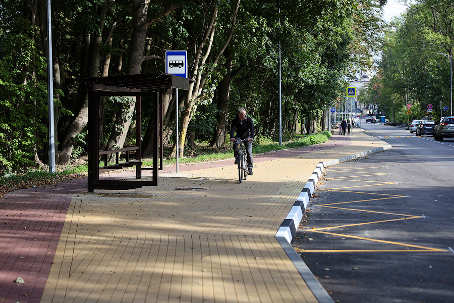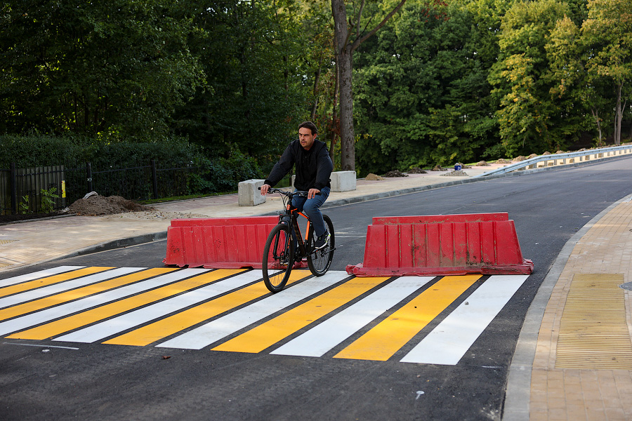 При устройстве велодорожек подрядчик столкнулся с тем, что на протяжении всей улицы нужно было устроить массу перекрестков и заездов во дворы частных домов. Практически везде бордюры понижены до уровня асфальта, что велосипедисты явно оценят. Зато может вызвать раздражение велоактивистов разрыв велодорожки в районе пересечения с улицей Спортивной. В Калининграде уже неоднократно наносили специальную разметку на перекрестках, позволяющую проезжать их, не спешиваясь. Здесь традицию решили не продолжать, и велодорожка получила нелогичные тупики.