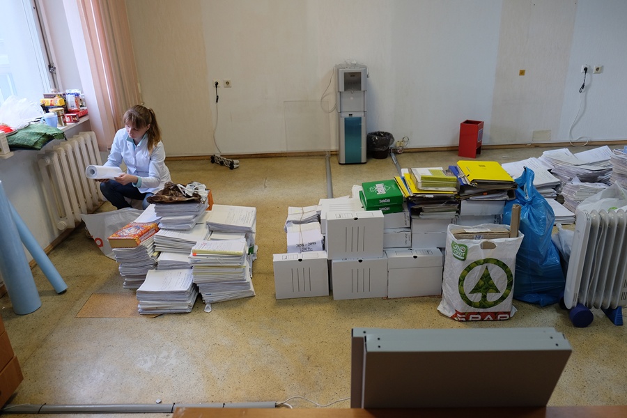 «Все эти годы мы оформляли производственные травмы и профзаболевания по всей области, и сейчас у нас очень большой поток людей, — говорит Просвирнова. — Комиссию и очное освидетельствование проходят минимум 16 человек в день. Сегодня успели только одного человека осмотреть, после чего нам позвонили и потребовали срочно освободить здание».